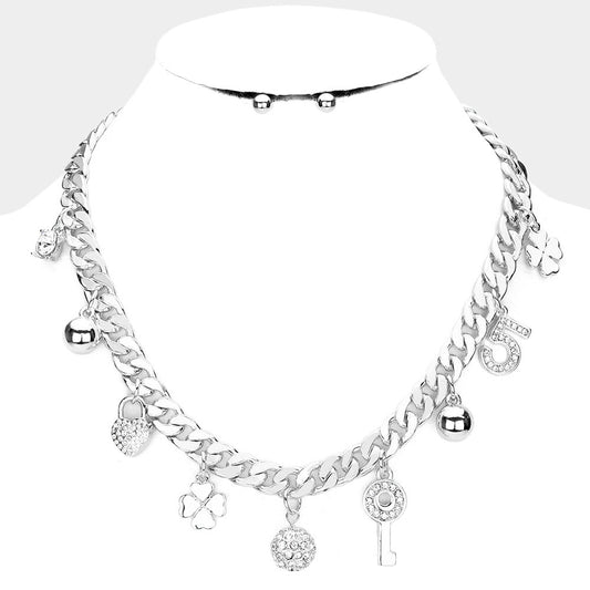 Butterfly Pendant Necklace Set in Pink & Green Stone
