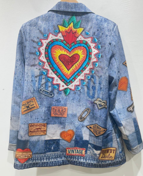 One Size Italian Denim Pop Art Patchwork Blazer