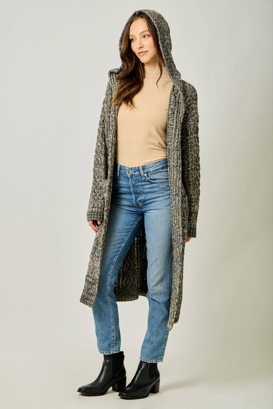 Sweater Open Long Hooded Cardigan D: Melange Charcoal / Small