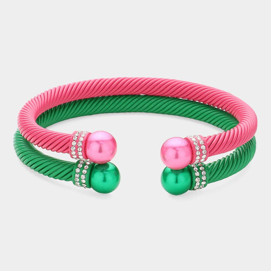 Butterfly Pendant Necklace Set in Pink & Green Stone